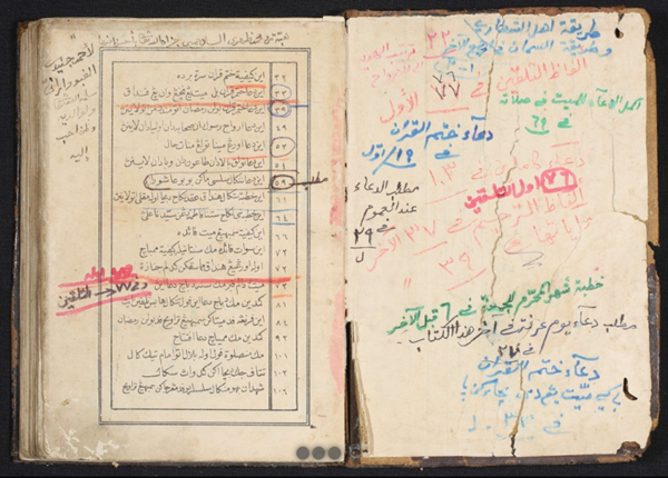 Naskah ketiga, naskah manuskrip koleksi Pesantren Nurul Fata yang letaknya di Sukabumi yaitu naskah yang berisi kompilasi do’a dari Al-Qur’an, sanad, fikih, dan tasawuf. Sampul naskahnya berukuran 16,7 x 11,5 cm, ukuran kertas manuskrip 16 x 11 cm, dan blok teks 12,5 x 6 cm. Terdiri dari 292 halaman dengan 3 halaman kosong. (DREAMSEA, n.d.-b) Naskah ini berupa litograf yang dicetak dan salinan yang belum diketahui siapa penyalinnya. Penulisan teks umumnya menggunakan tinta hitam, di beberapa halaman terdapat catatan dan penanda yang beragam warna, seperti warna merah, hijau, oren, ungu, coklat, dan biru.